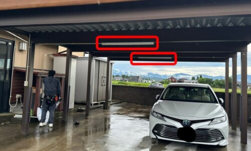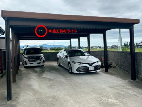 北九州市で広めのカーポートを明るく!LED照明2台設置と便利なスイッチ増設の施工事例
