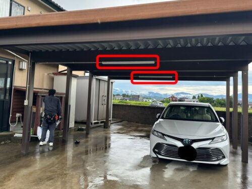 北九州市で広めのカーポートを明るく!LED照明2台設置と便利なスイッチ増設の施工事例