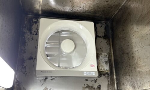 北九州市内で居酒屋を営むオーナー様より、厨房換気扇の吸い込みが非常に悪く、異音が気になるとのご相談をいただきました。確認したところ、長年の油汚れが蓄積し、モーターの回転が重くなっている状態でした。